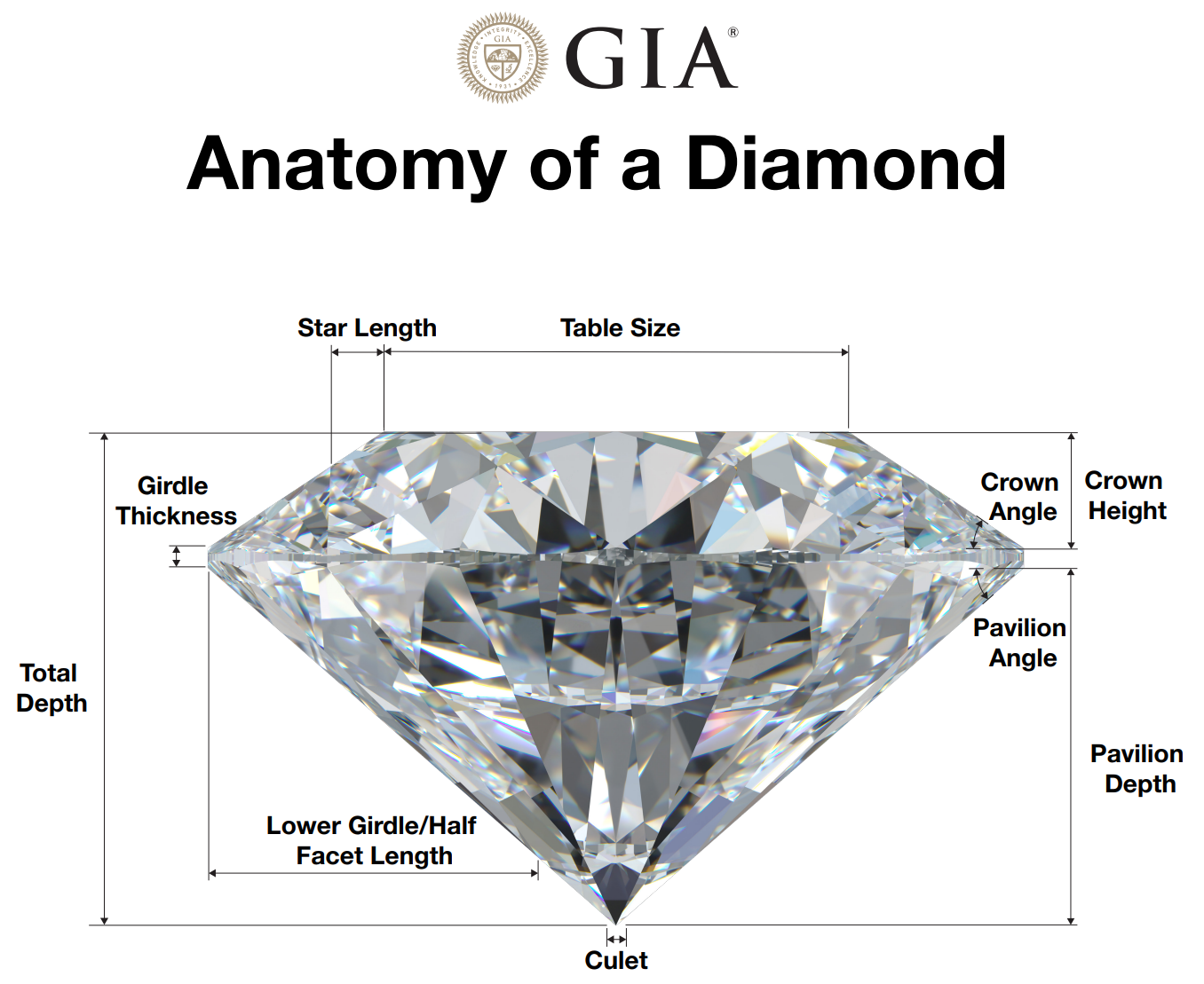 Ein Diamant ist weit mehr als nur ein funkelnder Edelstein. Seine Schönheit entsteht durch das präzise Zusammenspiel zahlreicher Proportionen, Winkel und Facetten. Jeder einzelne Bereich des Diamanten erfüllt eine wichtige Funktion und beeinflusst, wie das Licht im Stein reflektiert wird.