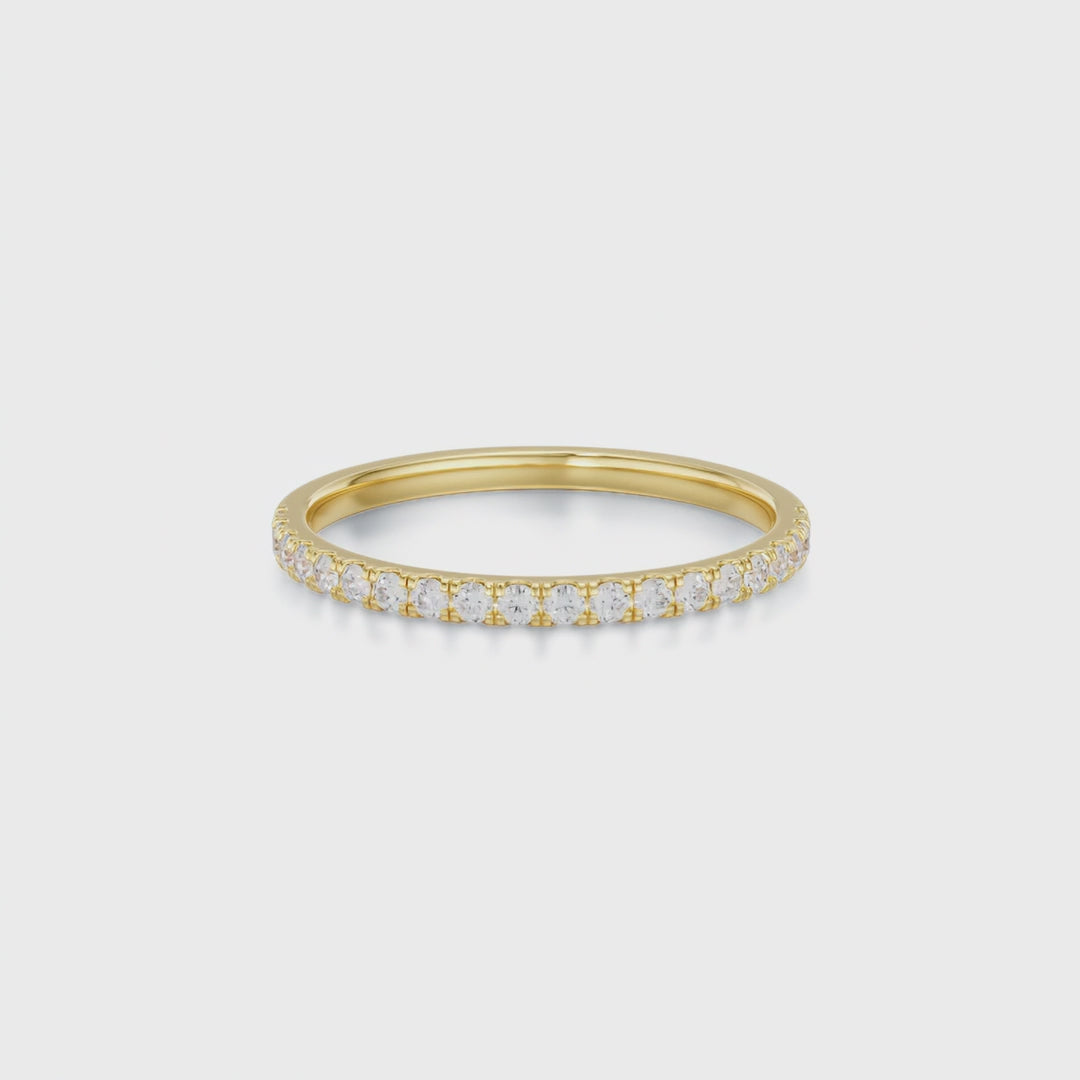 Unser MARA Eternity Ring ist bis zur Hälfte mit natürlichen Diamanten im Brillantschliff besetzt. Die Breite (1.60mm) eignet sich besonders gut als Ehering. Ein Schmuckstück für die Ewigkeit, das als zeitloser Klassiker ebenso gut für sich alleine, als auch in Kombination mit anderen Schmuckstücken funkelt.